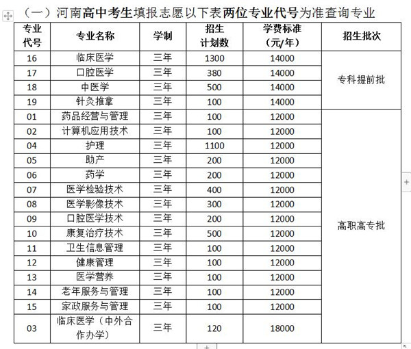 問題二:河南考生怎樣填報(bào)貴校??铺崆芭?醫(yī)學(xué)類)和高職??婆驹福?/span>