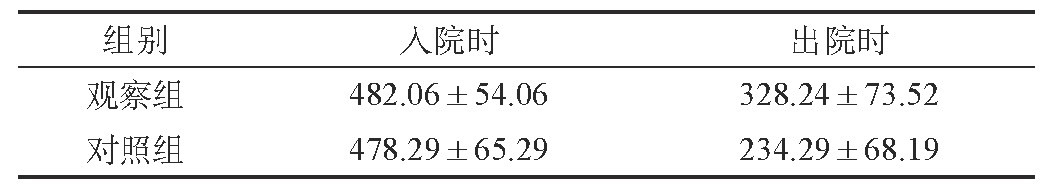 表1觀(guān)察組與對(duì)照組患者入院時(shí)及出院時(shí)血清D-二聚體含量對(duì)比