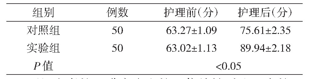 在生活質(zhì)量方面。經(jīng)過(guò)護(hù)理干預(yù)之后,組間進(jìn)行對(duì)比分析,實(shí)驗(yàn)組患者的生存質(zhì)量評(píng)分顯著高于對(duì)照組患者,P<0.05為差異具有統(tǒng)計(jì)學(xué)意義。見(jiàn)表1