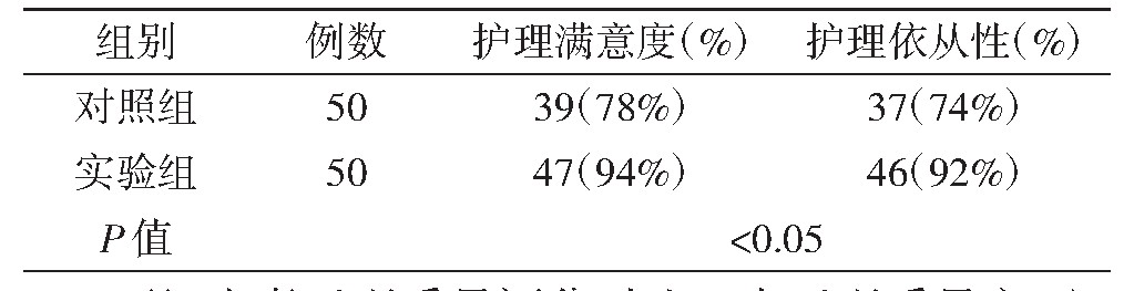 表2 兩組患者的護(hù)理滿意度和護(hù)理依從性比較